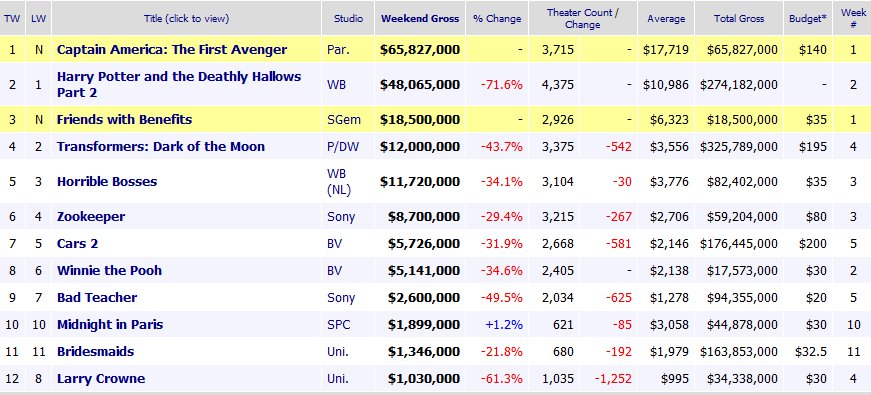 Mientras que los pronósticos tienden a ser un poco predecibles, ‘Captain America: The First Avenger’ ofreció una sorpresa al saltar a la posición de privilegio en la taquilla el fin de semana del 22 al 24 de julio, 2011.